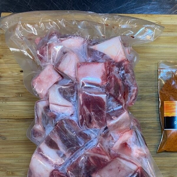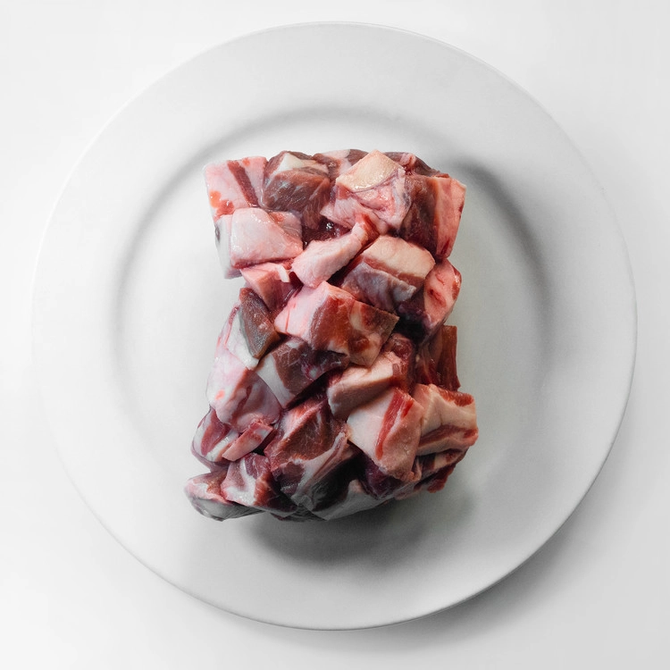 스튜나 커리를 위해 준비된, 큐브로 자른 양 어깨살입니다.